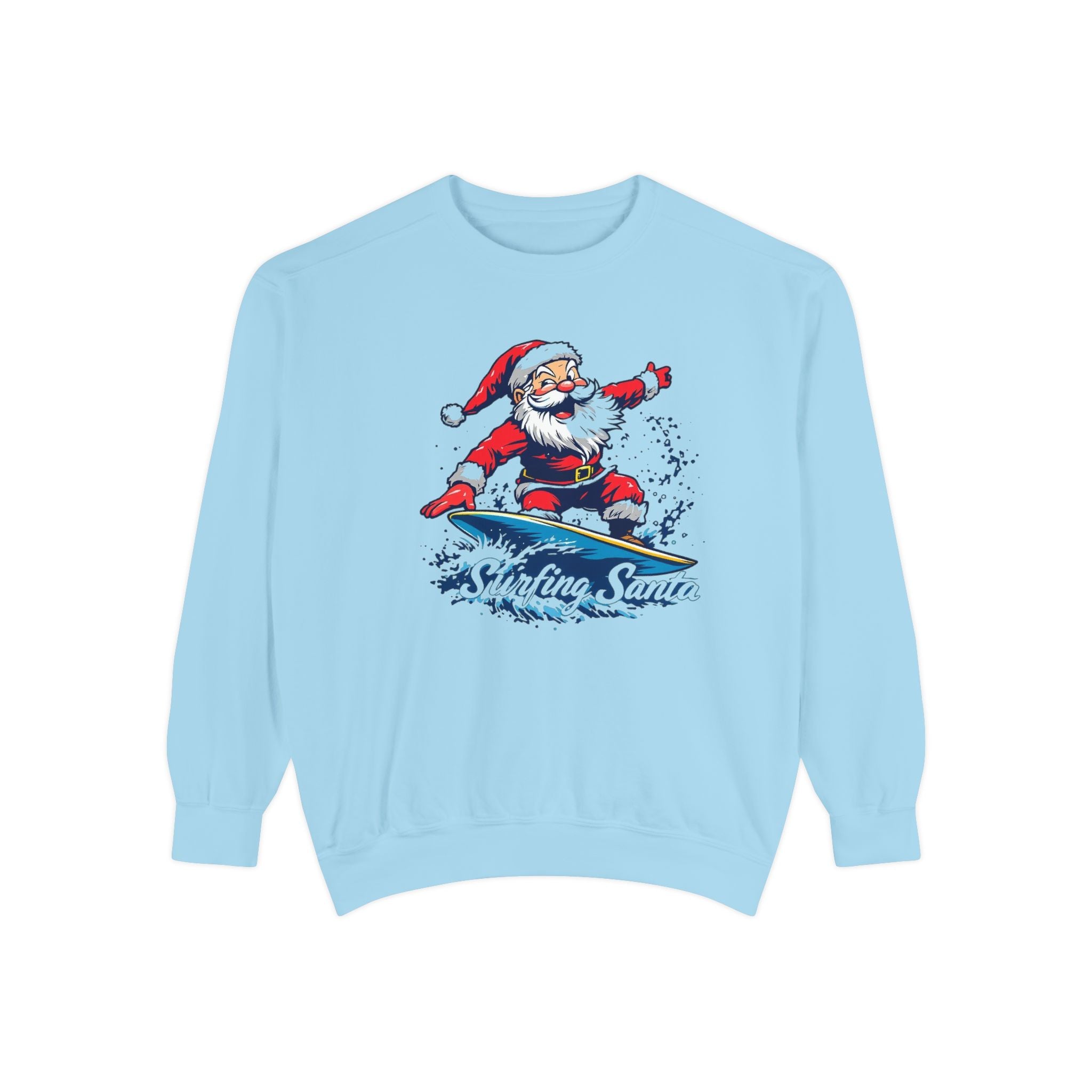 Santa Surfing Sweatshirt – "Surfing Santa" Christmas Holiday Pullover